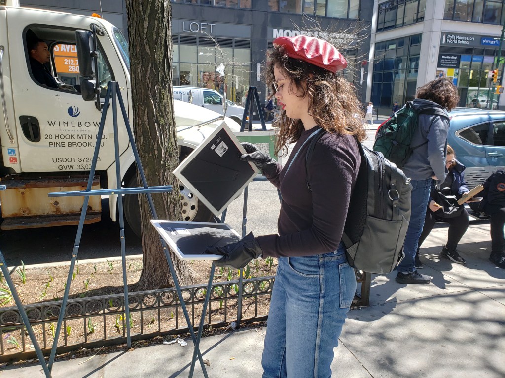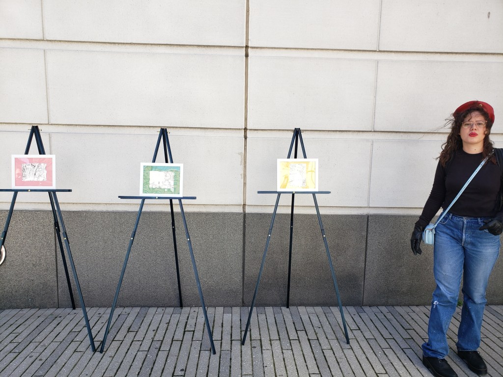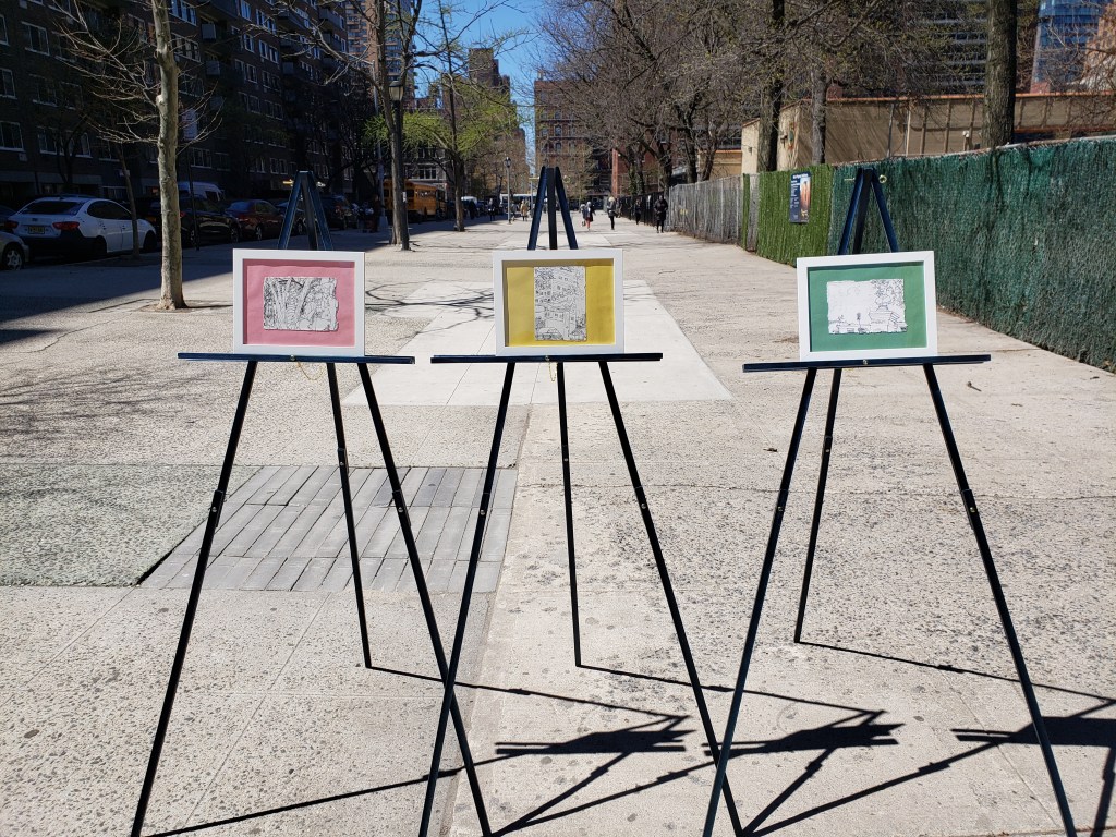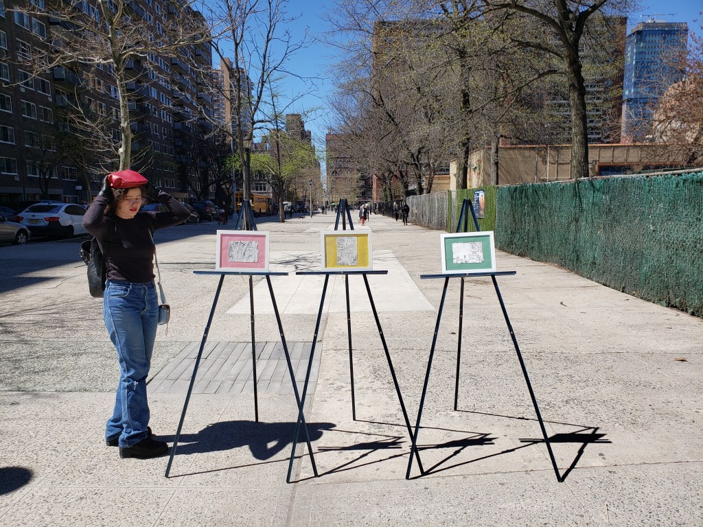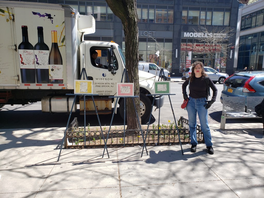 Esta acción se inserta dentro de lo transitorio en la cotidianidad de las calles de Nueva York, para ser una anomalía en sí misma; es una contraposición entre lo efímero y lo monumental. Exponiendo un tríptico de dibujos a monumentos en Cali (Momento Monumento), en una lucha anti-institucional por la permanencia. Tuvo lugar en la primavera de 2019, un martes 16 de abril. Se contó con la ayuda y participación del curador Luis Felipe Vélez